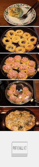 - Затем сверху каждого "Гнёздышка" кладём готовый фарш(любой на ваш вкус).